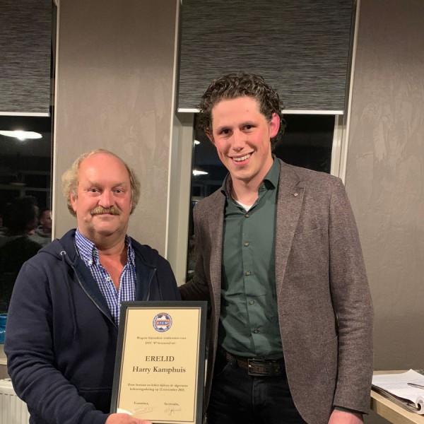 Over het jaar 2021 treedt Harry Kamphuis af als notulist binnen het bestuur. Harry heeft zich jarenlang (inmiddels 41 jaar en hopelijk nog veel meer) ingezet voor zowel TSV als DTC '07 en maakte trouw de reis vanuit Hengelo voor de vergaderingen van het bestuur en de trainingen en wedstrijden van het eerste elftal, waar hij nog steeds als teammanager actief is. Zijn aftreden als notulist was voor het bestuur van DTC reden om Harry extra in het zonnetje te zetten. Hij werd benoemd als erelid van de vereniging en kreeg een kleinigheidje uit handen van voorzitter Robbin Groeneveld. We hopen Harry nog jarenlang actief te zien binnen onze vereniging.